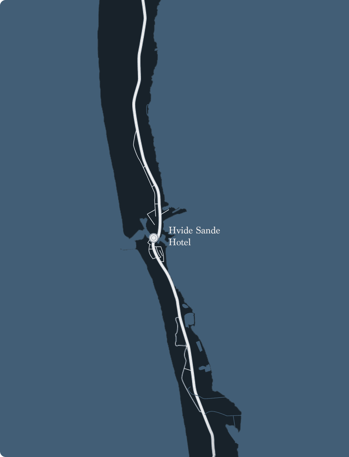Hotellet befinder sig i hjertet af Hvide Sande mellem Ringkøbing Fjord og Vesterhavet, helt tæt på det maritime miljø, hvide sandstrande såvel som et byliv med et stort udvalg af spændende butikker og fantastiske spisesteder.